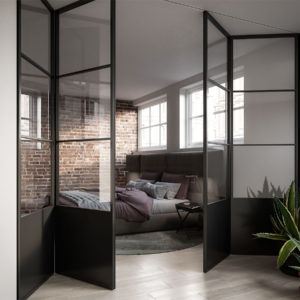 Good design reduced to the essentials was the motto for the development of this modern door line. The door as a wall-designing element is the focus here. The flush frame systems INTRA [jamb and casing mounted on the wall or mounted flush to the wall] and the flush FLAT frame system [invisible frame integrated into the wall] make customized solutions possible for architects and designers. No matter the dimension involved, surface design or opening direction, you receive your door tailored precisely to your wishes.